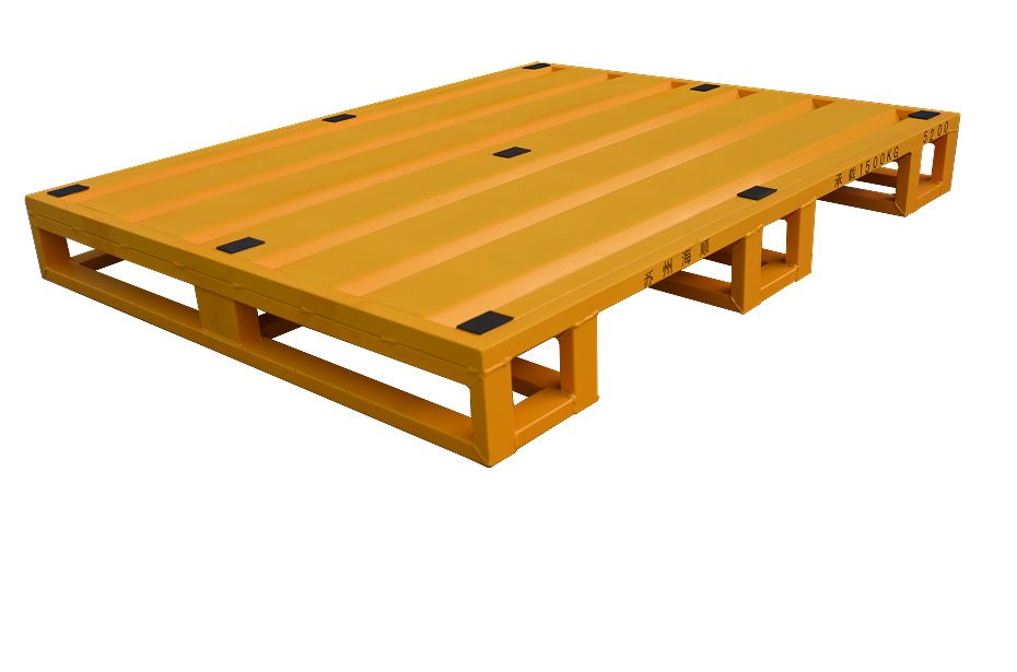 钢托盘又名金属托盘或铁托盘,是一种用来集装、堆存货物以便于存储或周转运输的水平板。钢托盘可与仓储货架、叉车、搬运车等设备配套使用,适用于自动化立体仓库,实现立体化存储,在现代仓储物流中发挥着巨大的作用。比起木托盘、塑料托盘、纸托盘来说金属托盘具有更长久的经济价值。其基本结构由铺板下设纵梁或垫块、支腿等所组成,托盘的最小高度以能方便使用叉车或托盘搬运车位。